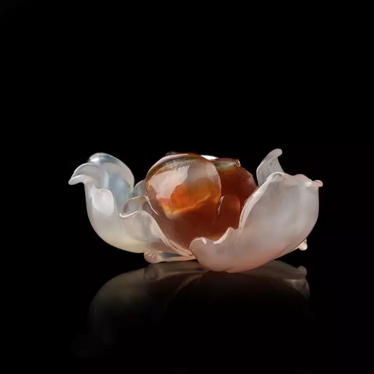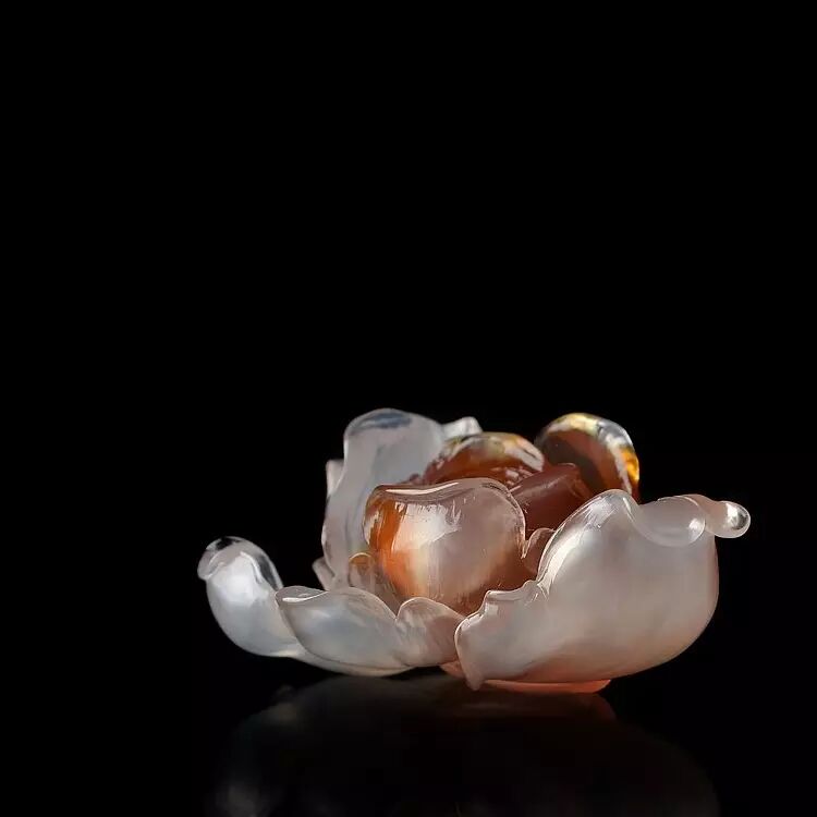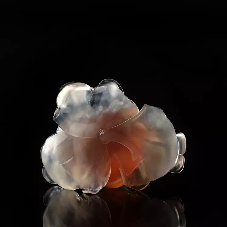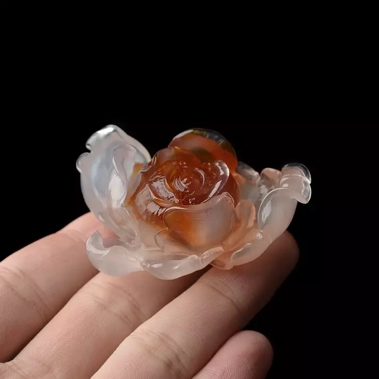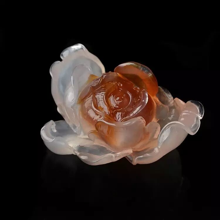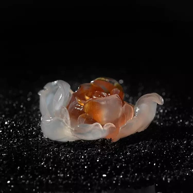 精雕细琢后的阿拉善牡丹,花瓣色彩过度的真实形象,内部的绚烂与外部的纯洁搭配的毫无违和感,天然的玛瑙纹络刚好将牡丹花刚开放时的烂漫瞬间展现,清新而自然。
