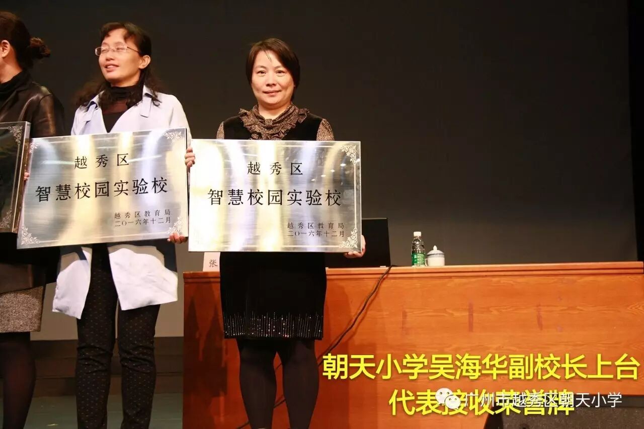 12月22日上午,越秀区教育局在越秀区少年宫小云雀剧场举办第五届教育学术节开幕式。朝天小学作为“广州市首批智慧校园实验校”被隆重授予“越秀区首批智慧校园实验校”的荣誉牌。本届教育学术节旨在促进区域教育综合改革,创新教育要素,将信息技术新成果转化为教育创新发展的强大动力。朝天小学将进一步发挥和释放信息技术对教育教学改革和发展的潜能,为区域提升教育信息化发展起到领头效用。