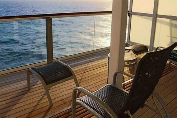 虽然在甲板上也可以看到海景,但是我更喜欢在私密的空间和家人独享海浪声,看日出日落,月光星辰,在海风中细语,所以我们选择了带阳台的房间。
