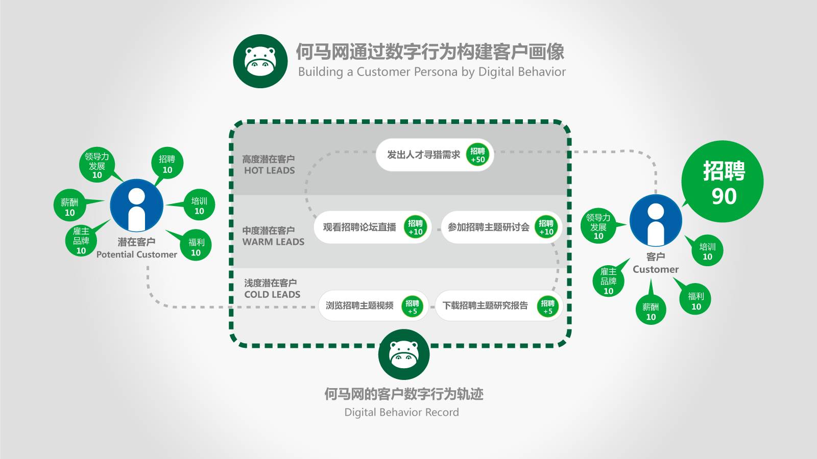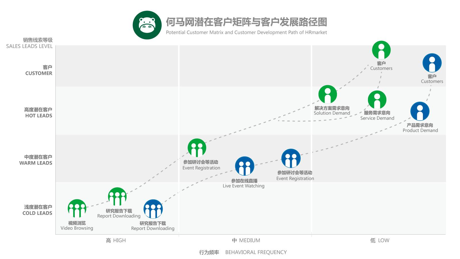 作为全球最大的人力资源服务在线交易市场,何马网(hrmarket.com)除了为人力资源服务供应商精准推送产品、服务与活动信息、获取销售线索、优化客户服务水平、高效管理市场活动提供一站式的服务外,还可以通过人力资源经理人对活动、视频、研究报告等不同内容的关注程度,帮助人力资源服务供应商实现对不同层次客户的快速区分,并明确不同层次潜在客户的发展路径以进行精准维护。此外,何马网(hrmarket.com)还可以通过人力资源经理人的数字行为轨迹,清晰构建客户画像,以实现对客户的精准引流。