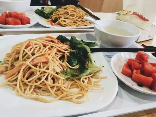 在公司的食堂里,一般有西餐、日料、煲、粥、面、腊味、西餐、特色餐等窗口,一周每天的菜单都会有变化,所以食堂吃得是真的很好!而且最重要的是免费!