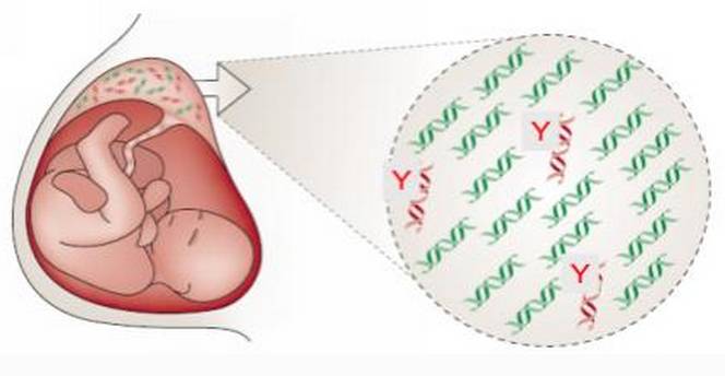 至今还没有一个特别发现证明,但是科学家推断可能DNA片段从胎盘滋养层来,然后透过母胎之間的循环系統进入母亲血液。