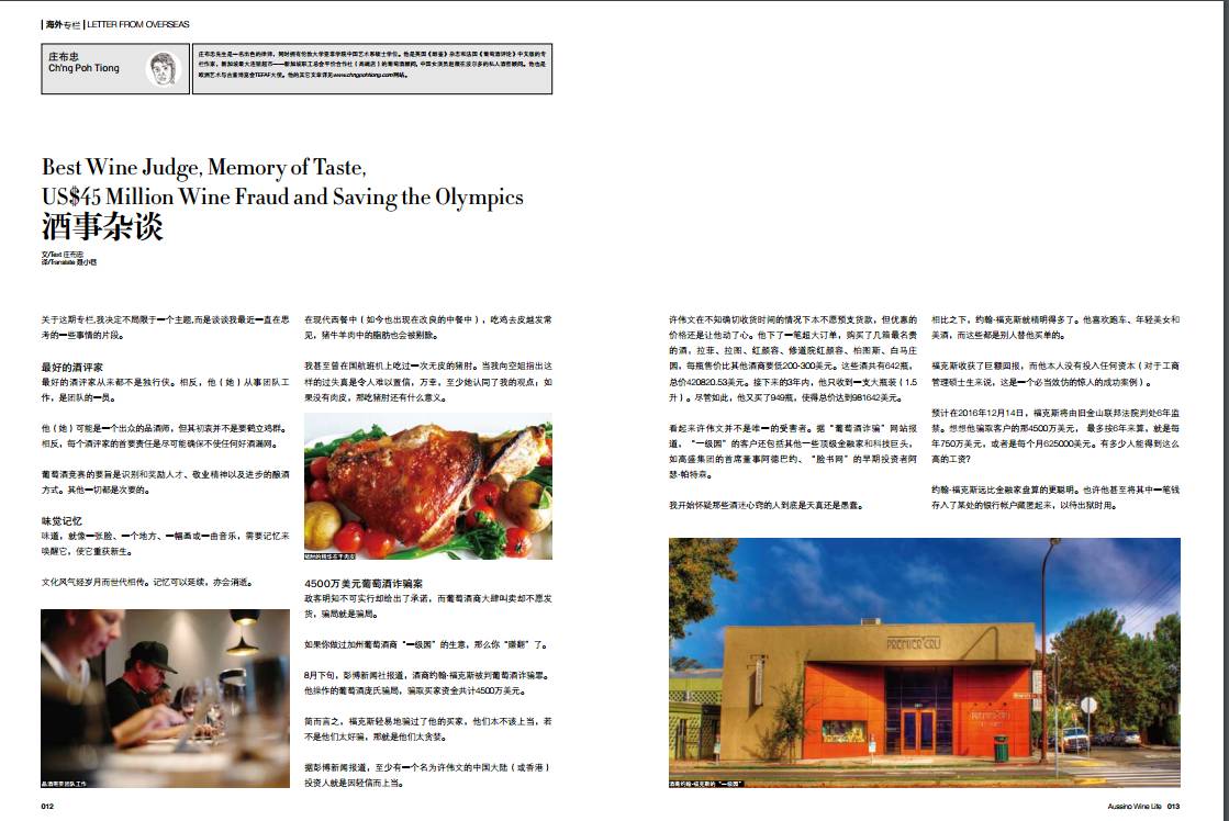 庄布忠老师趣谈“最好的酒评家”、“味觉记忆”、“4500万美元葡萄酒诈骗案”和“拯救2020年奥运会”。