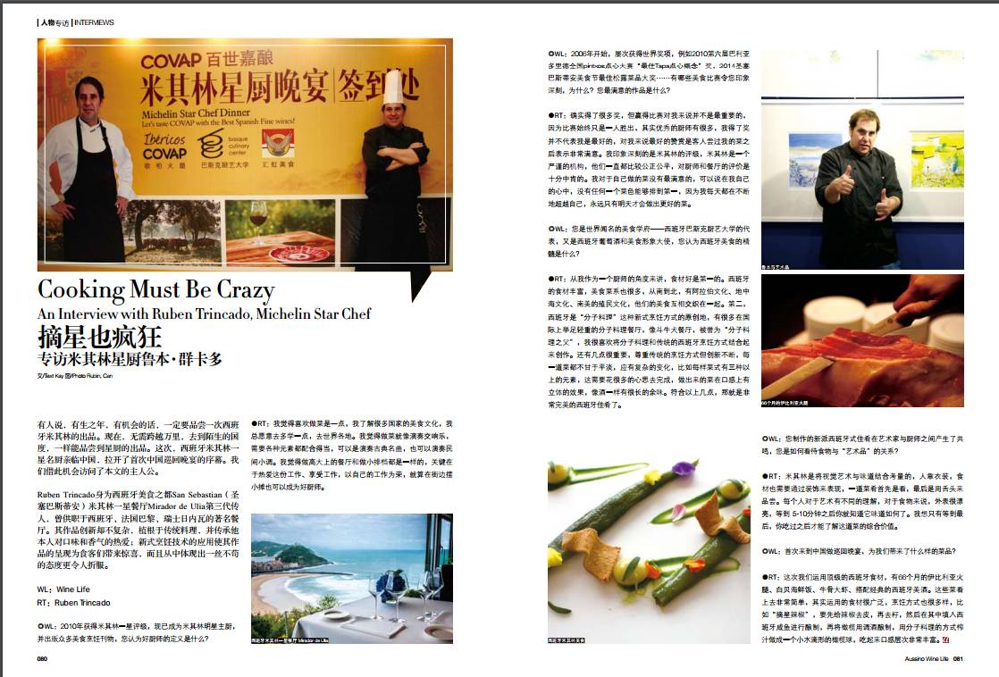 本期看点除了有老牌栏目美酒大片、魅力酒膳,还有众多名庄访问、米其林星厨专访,以及一直受到酒友们爱戴的庄布忠老师专栏和Denis老师的手绘漫画等等,更有累积了编辑们多年心血的餐酒搭配专刊,为大家带来爱美酒更爱生活的文化大餐。