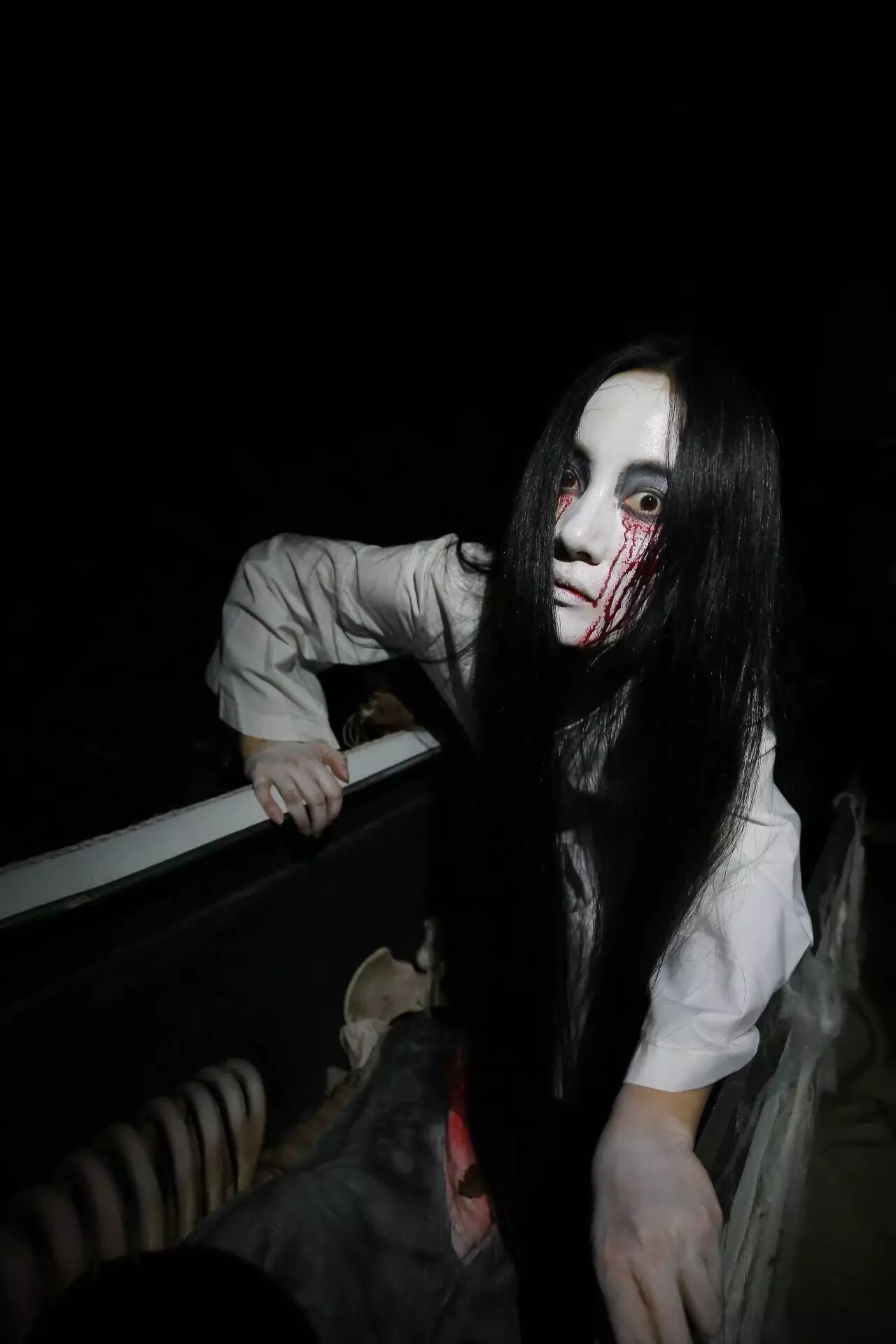 在我长发及腰时,我是万圣节的贞子,浑身散发瘆人气息,只想吓得别人神经错乱。如果你胆大,可以戳这里查看去年长隆万圣节文章: