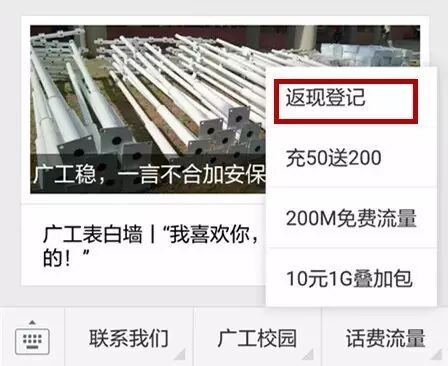 ❸充值成功后,进入“话费流量-返现登记”或回复“登记”登记充值信息。根据你登记的信息,将在5日内返还5元。