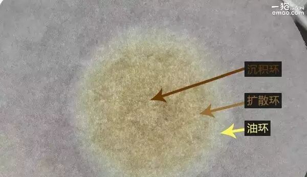 1.沉积环,在斑点的中心是油内粗颗粒杂质沉积物集中的地方,由沉积环颜色的深浅可粗略判断油被污染的程度。