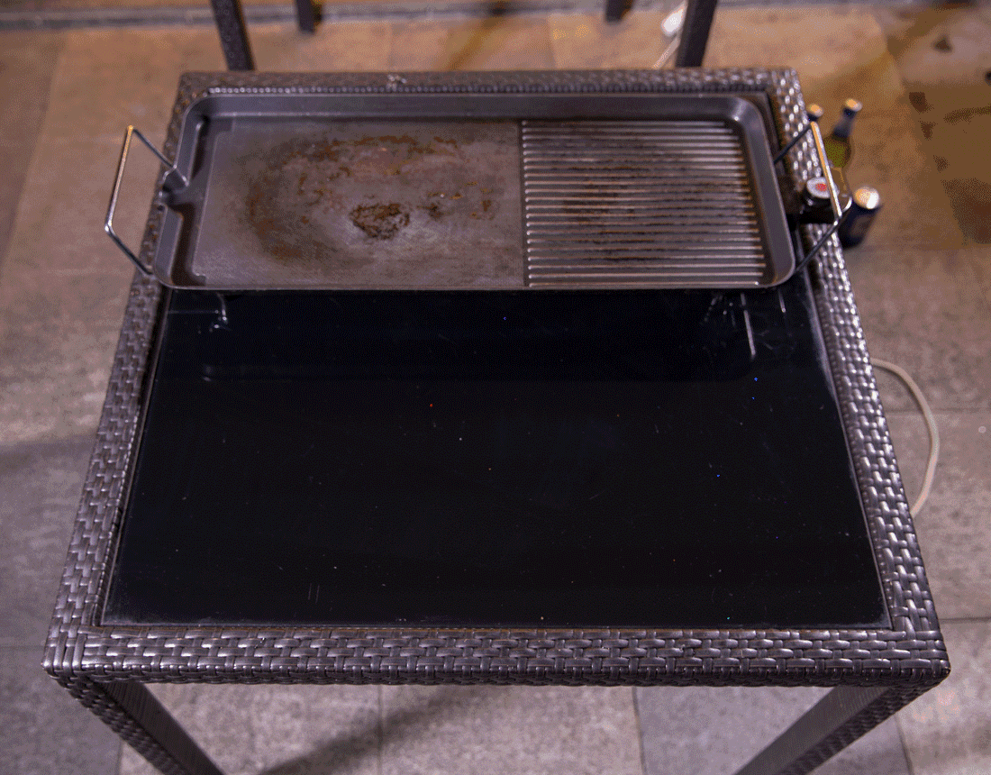 仲配备了电磁炉、烧烤炉、冰箱等用具。