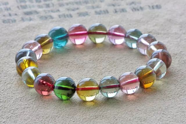 从这点来看,左边的碧玺手串透度是最高的,虽然也有些许杂质,但肉眼来看已经很少,中间这条明显杂质和冰裂会多一些,而右边的这一条几乎没有透度。