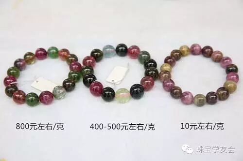 说到衡量碧玺价格的因素主要是三点:颜色、晶体的亮度、透度。凭借着这三点,咱们来看看下面这三串碧玺,您会选择哪一串?它们中间最贵的和最便宜的每克就相差了80倍!