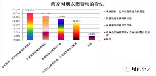 (注:有的商家会对朋友圈营销有多种看法,所以每种看法的比例的和不是100%)