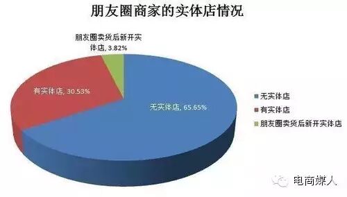 绝大部分65.65%的商家是没有实体店的,可见有无实体店铺,对朋友圈商家的影响很小;