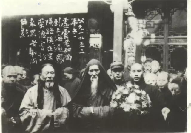 青年时期的佛源老和尚(右)和虚云老和尚(中)、来果老和尚合影留念