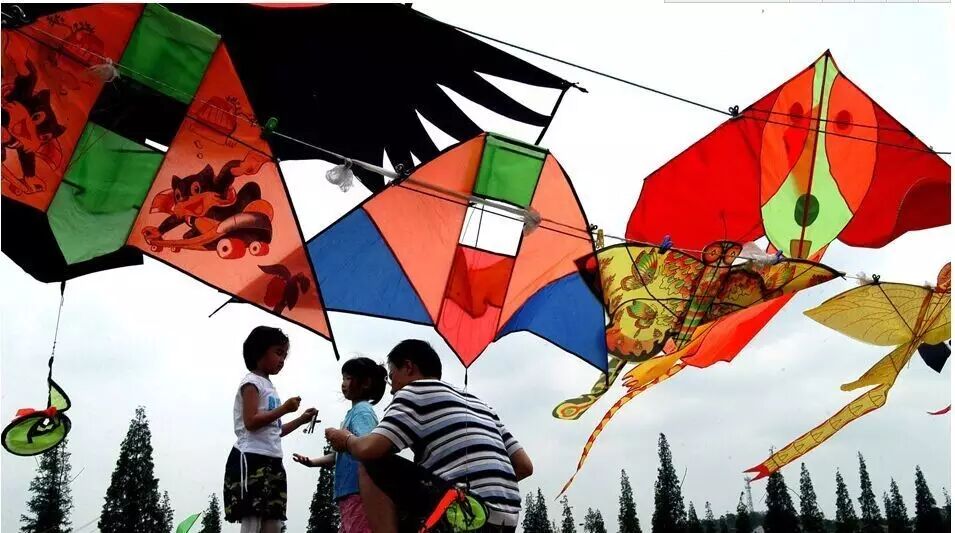 贵阳花溪河畔,一位父亲与孩子在准备放飞风筝。