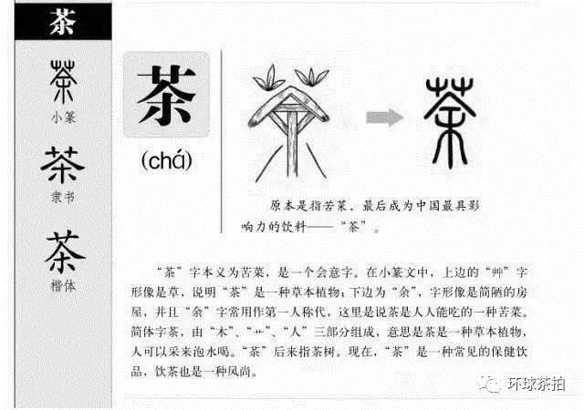 于是从一字多义的“茶”字中,衍生出“茶”字.陆羽在写《茶经》时,将“荼”字减少一划,改写为“茶”.从此,在古今茶学书中,茶字的形、音、义也就固定下来了。