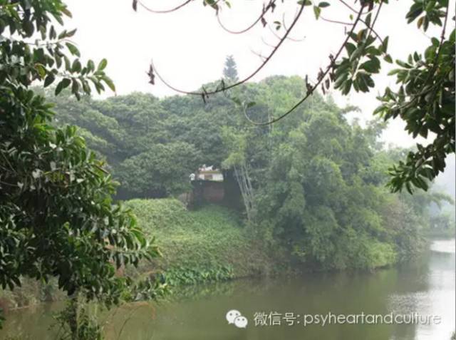走过两棵百年老榕树,它们一左一右守护在林中小道的两旁;繁茂的枝叶相互攀援,犹如天然的门户;凸起的树根很像是门坎,垂下的树须酷似门帘……由此穿越一条长满茂密花草的弯曲小桥,便来到了洗心岛的大门。