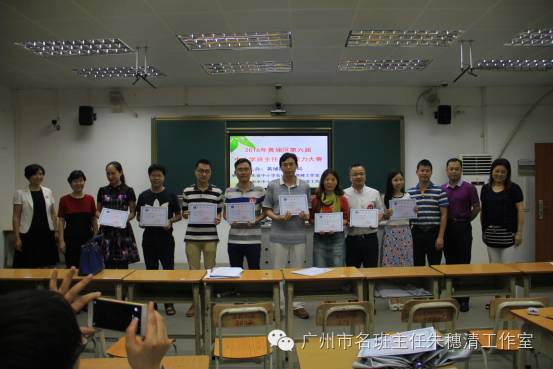 2016年5月19-20日,广州市黄埔区第六届中小学班主任专业能力大赛在玉岩中学顺利举行。比赛由黄埔区教育局精心组织,广东省名班主任熊峰工作室和广州市名班主任朱穗清工作室承办。设书面必答题、成长故事叙述、主题班会(班集体活动)设计和情景问答四个环节,小学组、初中组、高中组、及中职组4个组别共85名班主任经过层层展示与角逐,其中24人进入最后一个环节比赛,最终程敏、罗涛、蔡丹、邓以琼等老师斩获特等奖。