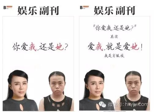 光棍节当天,《南方都市报》娱乐版头版,整个版面除了两位年轻女子的照片外,只有一句“你爱我,还是她”的文案,引发网友奇葩搞怪的脑补猜测。第二天,同样的报纸上,出现另一副画面,内容为“爱我,就是爱她,我叫肖佩枝”。 此文正式揭开谜底,原来之前面临“爱情抉择”的两位女子居然是同一人。,这位自称叫肖佩枝的女子,曾参加广州美莱全球大型整形真人秀“美莱梦工场”选拔,并获得免费整形资格,由广州美莱国际专家部的专家们共同打造。网友猜测,也正是由于此次整形,才让她的容貌发生如此判若两人的变化。