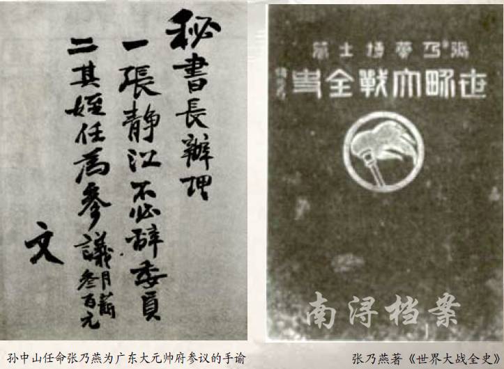 孙中山任命张乃燕为广东大元帅府参议的手谕