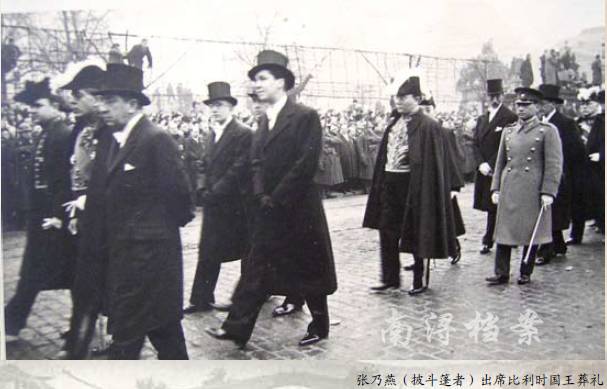 张乃燕(披斗篷者)出席比利时国王葬礼