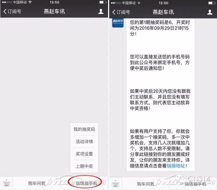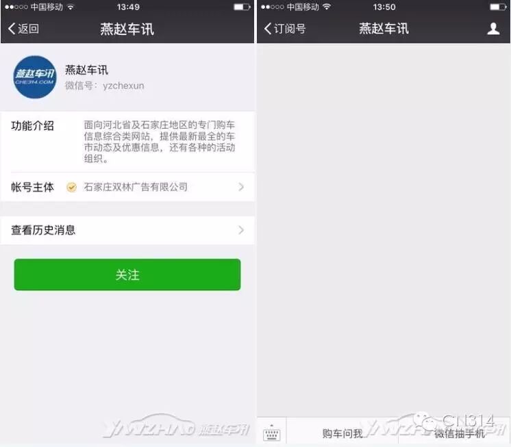 具体参与方式如下:首先,需要你关注“燕赵车讯”,打开微信在搜索栏中搜索公众号“燕赵车讯”,然后就会弹出“燕赵车讯”的公众号,点击关注大家就可以开始免费抽手机之旅了!