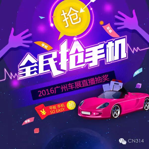 2016年第十四届广州车展马上就要来临了,车展期间我们来推送一波微信抽奖送手机活动!一周有8台手机来抢!这么高的中奖率,下一个中奖的就是你,免费把手机送到你的手上!你心动了吗?还不赶快行动!