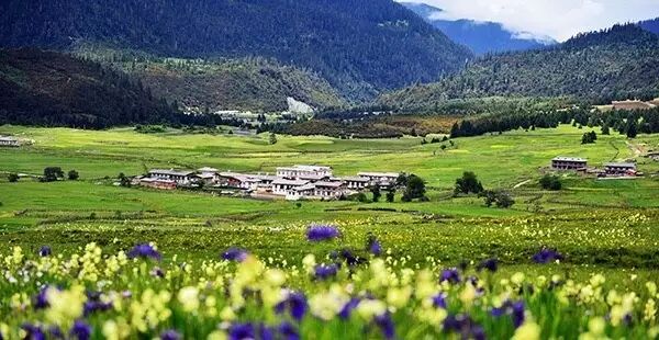 两侧青山由低往高分别由灌木丛和崐茂密的云杉和松树组成“鲁朗林海”;中间是整齐划一的草甸,崐犹如人工整治一般;草甸中,溪流蜿蜒,泉水潺潺,草坪上报春崐花、紫苑花、草梅花、马先蒿花等成千上万种野花怒放盛开,颇崐具林区特色的木篱笆、木板屋、木头桥及农牧民的村寨星落棋布、崐错落有秩,勾画了一幅恬静、优美的“山居图”。