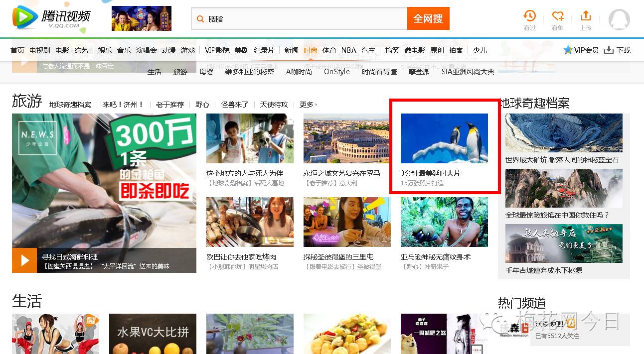 《15万张照片,打造3分钟最美延时大片》这条三分钟延时视频,在腾讯等视频网站上短短三天就录的超过500万观看量。