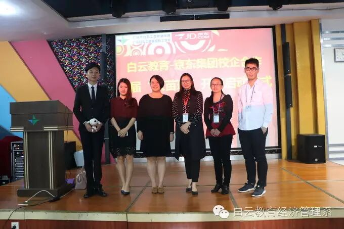 出席启动仪式的有广州市白云工商技师学院教务处处长、校企合作办周强主任、就业中心陈心为主任、经济管理系陈立稳主任、黄乐光副主任等学校相关领导,以及京东大学华南分院副书记崔健、京东大学华南分院办公室主任曾思敏、京东华南区域分公司校园机构负责人牟善龙。