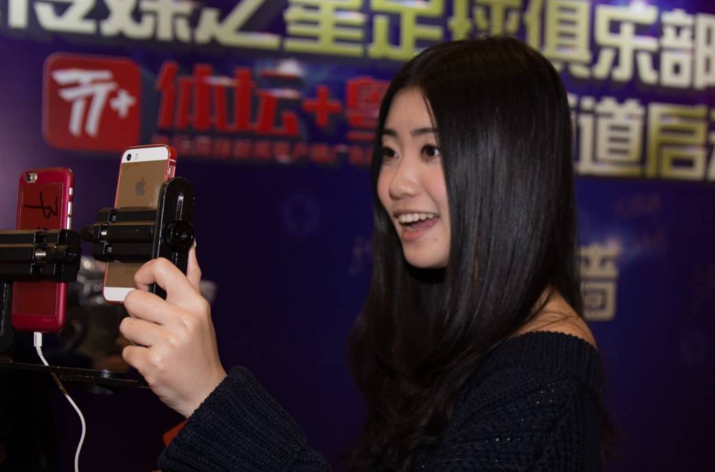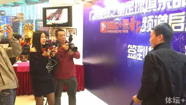 在活动现场,体坛+粤看台美女主播吕嘉欣直播解说,体坛+总编辑骆明在签到墙上签字。