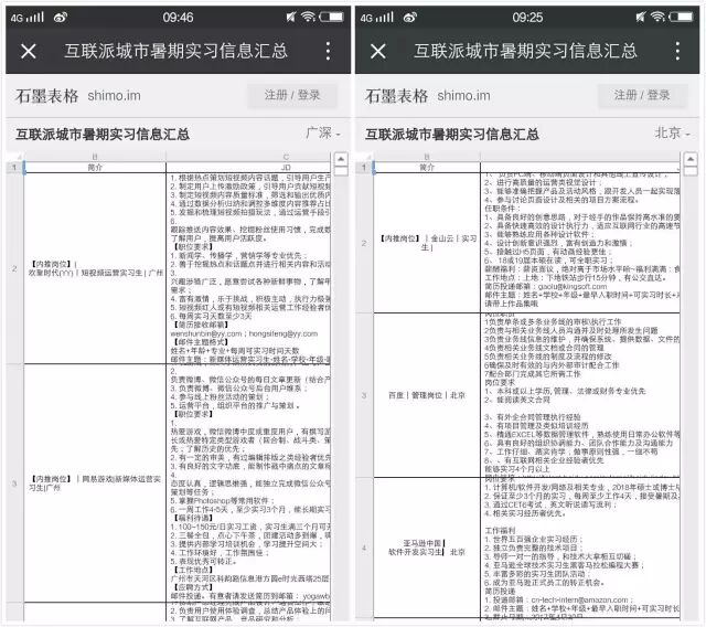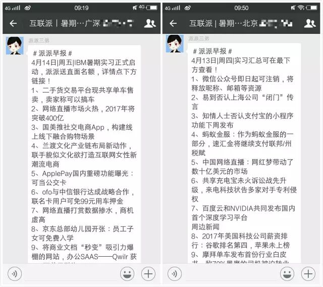 派派每日定时更新大量优质的暑期实习信息,岗位信息涵盖互联网、IT、互联网+、新科技、创投等多领域。群内还有名企HR直接发布求职信息,第一时间投递。职位信息详细到令人发指,包括具体的实习地点、薪资、福利待遇、是否包住宿等。此外派派为了大家更直观看到所有岗位信息,直接将信息汇总,一览无余,也省去各位同学爬楼找往期实习时间。