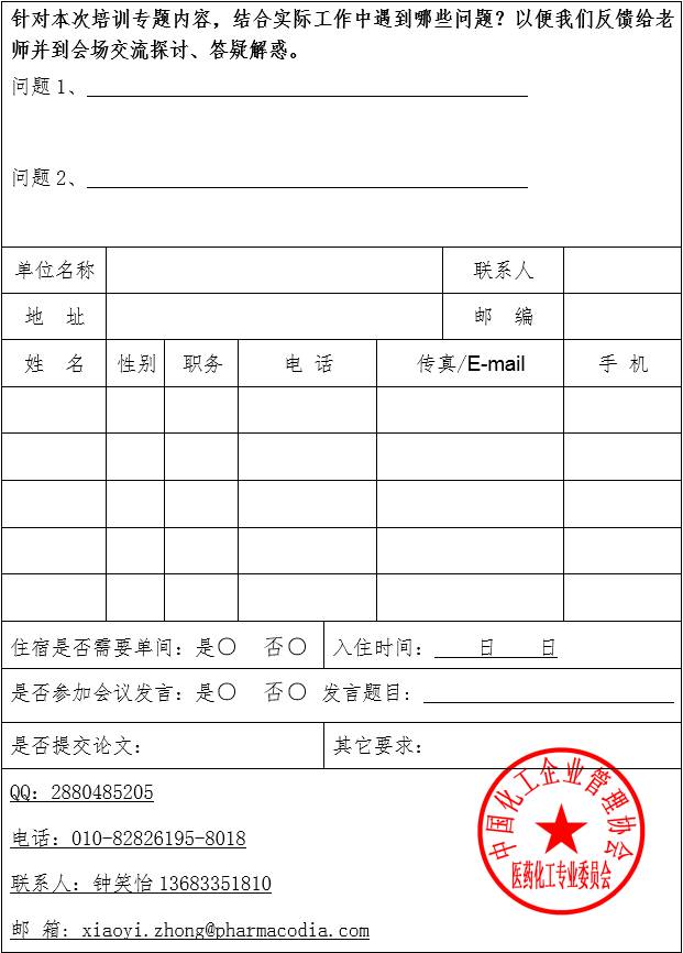 “化学原料药制备工艺研发及其生产工艺验证”研修班回执表