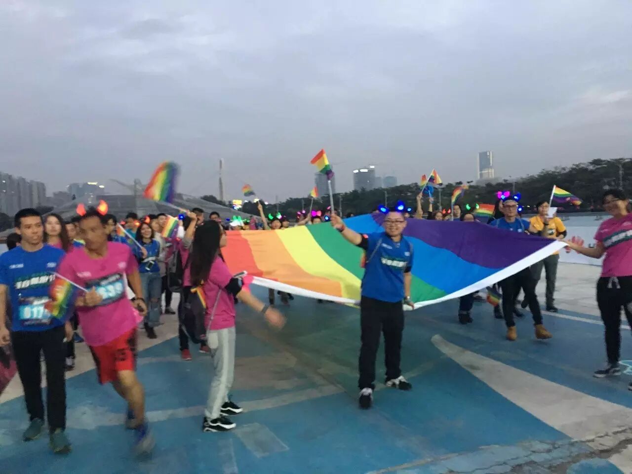 12月3日,同性恋亲友会广州小组组织的彩虹方队参加咪咕善跑,让我们更多的相聚在了一起,很多的小伙伴挥舞着彩虹旗,那是我们心中的一份执着。有些身披彩虹旗,让我们感受到了更多的温暖。上千的人群中并没有异样的眼光,更可喜的是,有些家长带着自己的孩子拿着我们的彩虹小旗,为我们一起挥舞着。