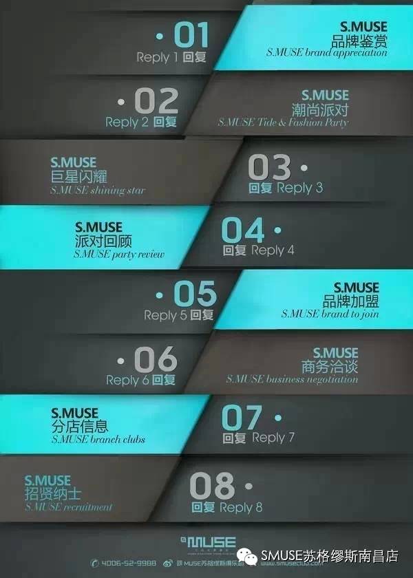 关注@MUSE苏格缪斯南昌店官方新浪微博,开启奢华之夜。加入官方微信smuse_nanchang,开启微信订位。抢订热线:0791—86261888 0791—86261666