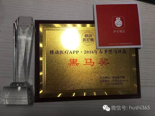 2016年5月 护士笔记获得“移动医疗APP·2016年春季黑马评选 黑马奖