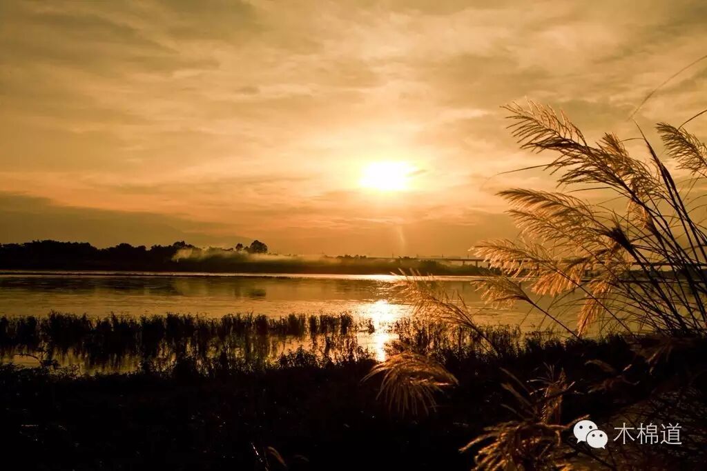 木棉静思:夕阳下的云彩,就是这么美,就如木棉道的秋装,让人迷醉。近在咫尺的江水,远在天边的落日,完被大江连在一起,我在江头,你在江尾,这一刻,人无言,荒无语,天净沙!