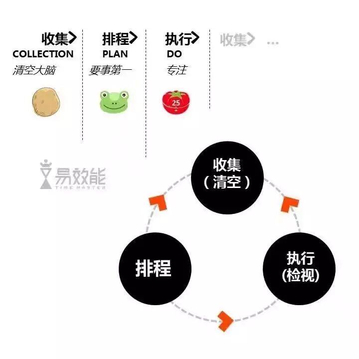 首先,易效能时间管理理论认为:管理时间的核心是事件的分类,其基本流程:收集-排程-执行。