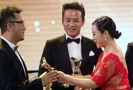 郝蕾则越过邓超把手里最后一个奖杯给了郭涛。