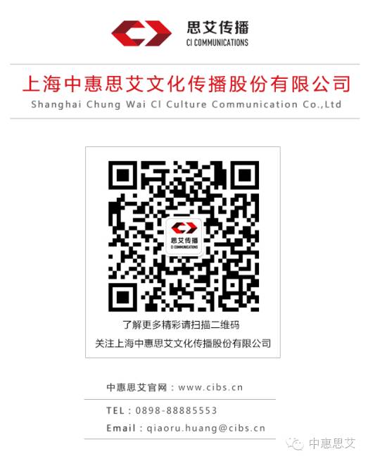 中惠思艾是全国唯一全产业链品牌传播一站式服务机构。经过十余年的发展,聚集了一大批专业度高、经验丰富的员工;中惠思艾坚持以超越时代、与国际同步的创意思维,高素质的执行团队、完善的管理团队为每一位客户提供最优质的会议会展服务。2016年,思艾传播与中惠集团强强联合,着眼了全国布局,如今已经形成了海南、上海、北京、广州、香港等多地布点的战略布局,囊括汽车、房地产、医药等多个行业,并与众多国内外知名品牌公司形成战略合作。