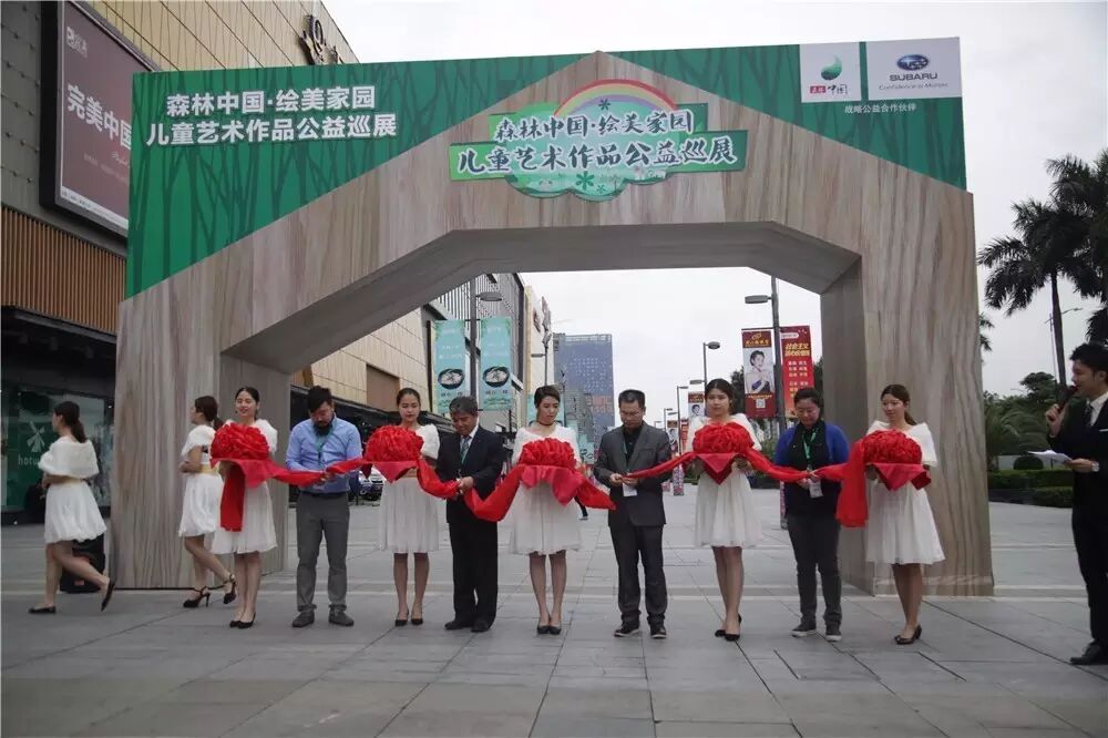这里是森林中国以“生态·健康·孩子”为主题举办的“2016森林中国·绘美家园儿童艺术作品公益巡展”继北京、南通之后的最后一站的活动现场,有来自包括森林中国组委会、广西花坪国家级自然保护区管理局、桂林生态诗书画摄影研究院和战略公益合作伙伴斯巴鲁汽车(中国)有限公司广州分公司的领导等出席了公益巡展的开幕仪式。