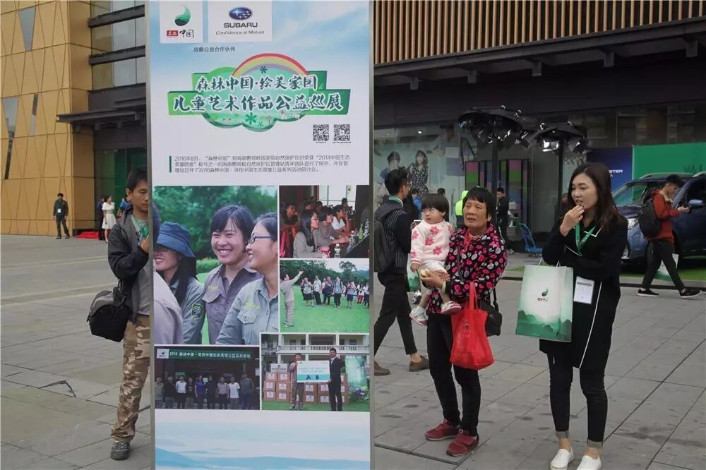 这次艺术作品公益巡展将会进行为期5天的露天展示,这些作品来源很广泛,不仅有从全国35473幅儿童生态题材参选作品中甄选出的优秀作品,也有特邀画家的写生作品、中国知名艺术家的作品,同时还有森林中国·远行家的自驾和公益活动以及战略公益合作伙伴斯巴鲁汽车(中国)有限公司“31座森林星之旅”第四季活动的精彩记录照片,这些丰富多样的作品,都有各自生动、有张力的艺术表现手法,关键是都通过了特别的方式唤起了公众对保护生态环境的责任感。
