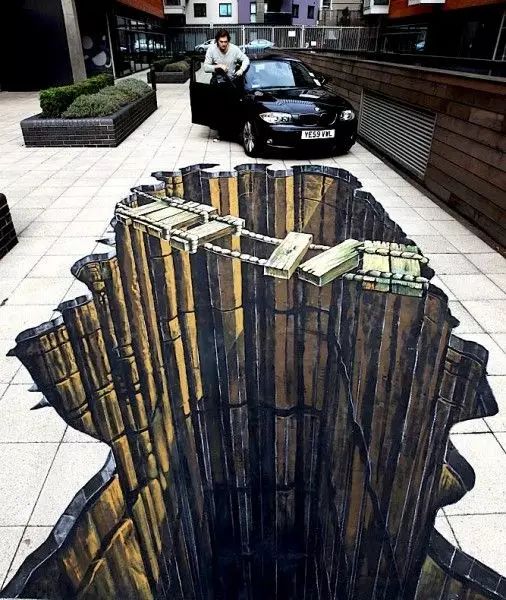 不要那么害怕,这些都是画在地面上的3D涂鸦,只不过,画的太过逼真,如果不小心走上去,还真会吓那么一跳。不信,你来看看。。