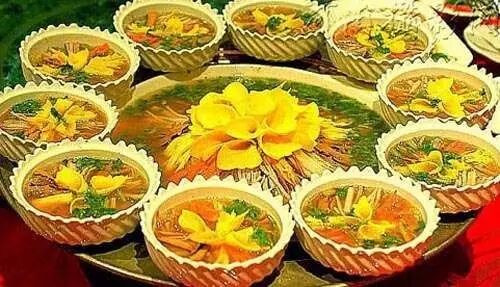 洛阳四面环山,处盆地,雨量少,故民间饮食多用汤类,以抵御气候干燥寒冷。不论是早上,中午或者晚上洛阳人都爱喝汤,洛阳人最自豪的国宴:水席24道,也终归是汤。所以洛阳的饮食文化浓缩来说就是一个字:汤。