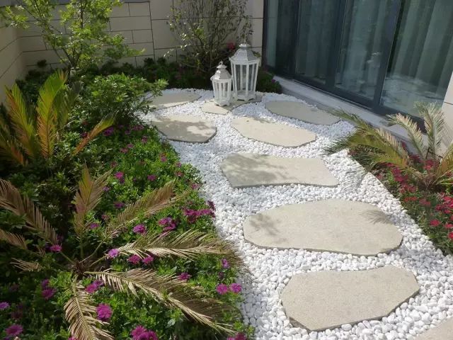 8.砾石路:弯弯曲曲的砾石路可以让一个小花园显得更大,通过较多的植物和树木的组合,花园的空间感更好。
