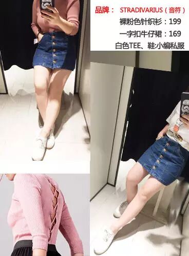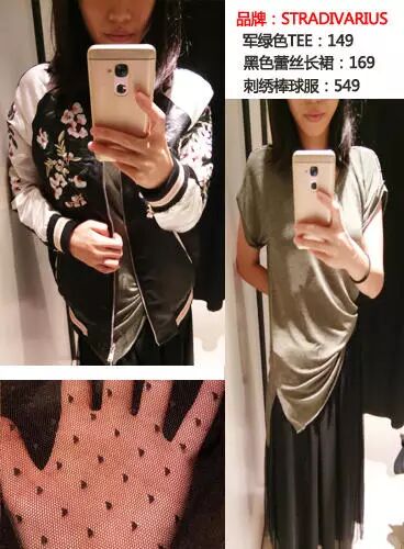由于hm真的不好看,折姐转战去了♪ stradivarius(音符)。作为zara的副牌,这个牌子的价格可人,款式更年轻化一点。三下五除二就在这边选好衣服了,折姐又被无情的通知不能带鞋子进去,只能光着脚丫子穿了,不好看,不要嫌弃哦。