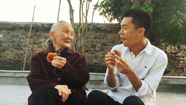 我的回来,最高兴的就是外婆了,她今年90岁,天气好的日子,还会帮削柿子皮。她的知已姐妹中,有的已经100岁了,因为优良的空气与水质,村子里随处可见长寿老人,柿子也分外甘甜。