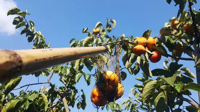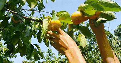 一手摘下新鲜的柿子,
