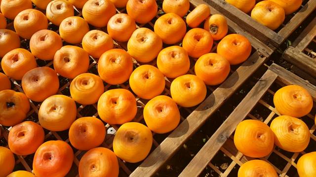 柿子皮薄,肉细,汁甜,但并不适用于运输,为了让外面更多的朋友可以品其真味,把月柿通过自然晾晒制作成柿饼是一个聪明的办法。
