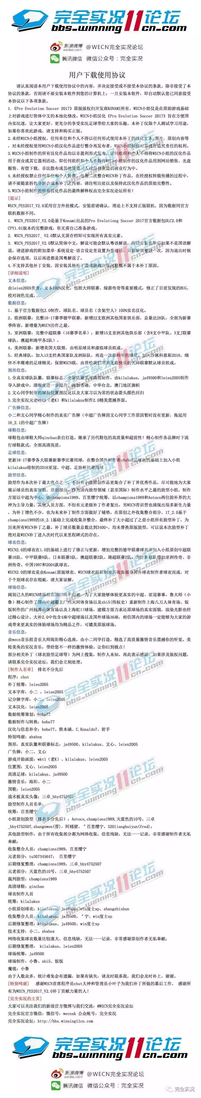 PES2017_WECN_V2.0补丁正式发布(含德甲、中超中甲、经典元老队)