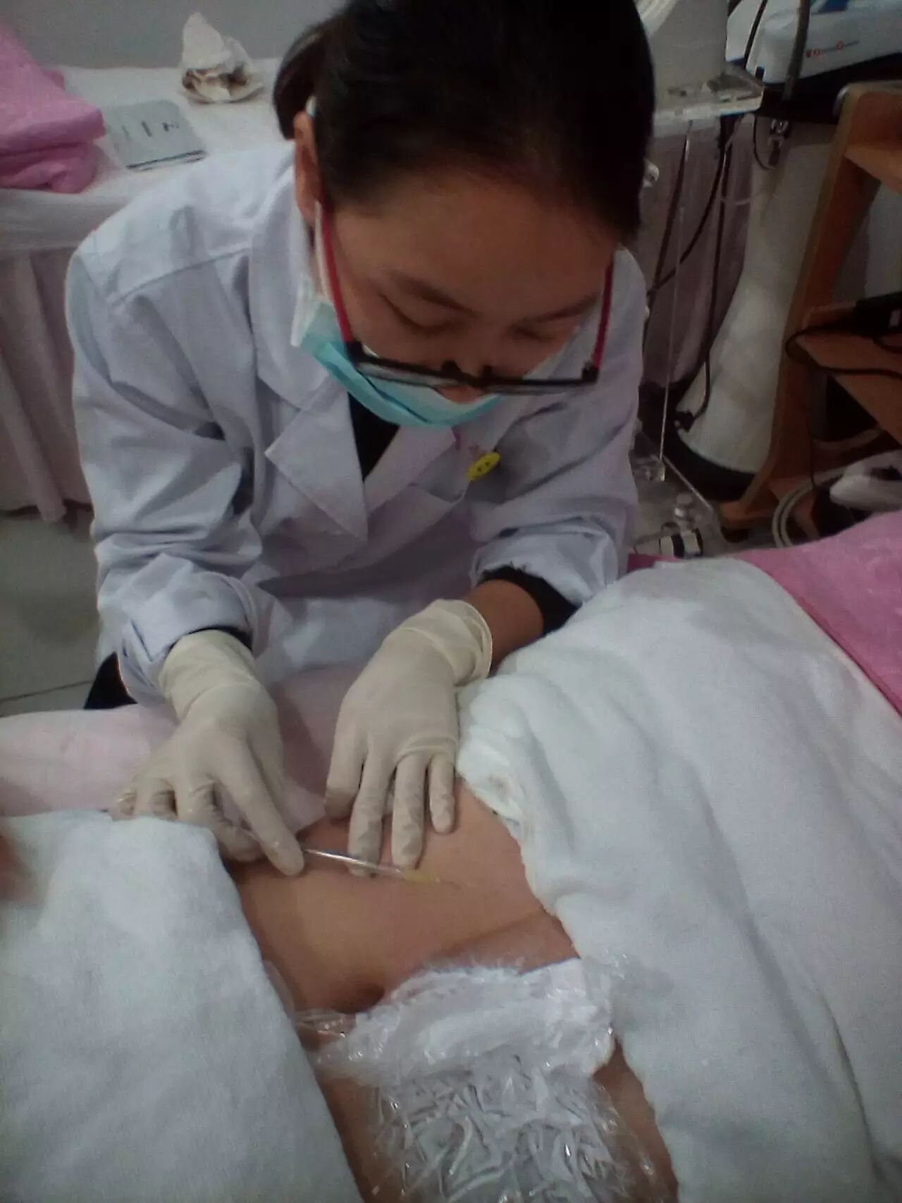 医生很认真,一条条妊娠纹的给我打,敷麻药的地方有些针扎的感觉,但是还可以接受啦!